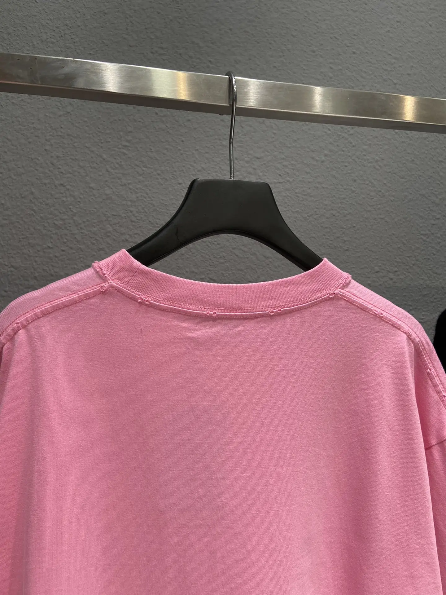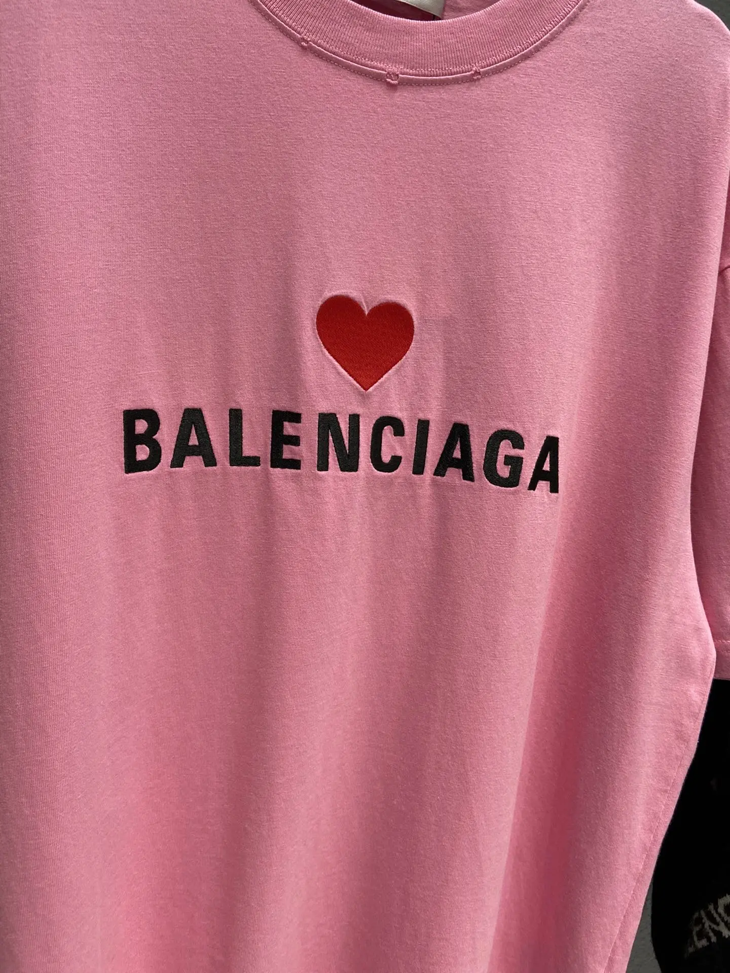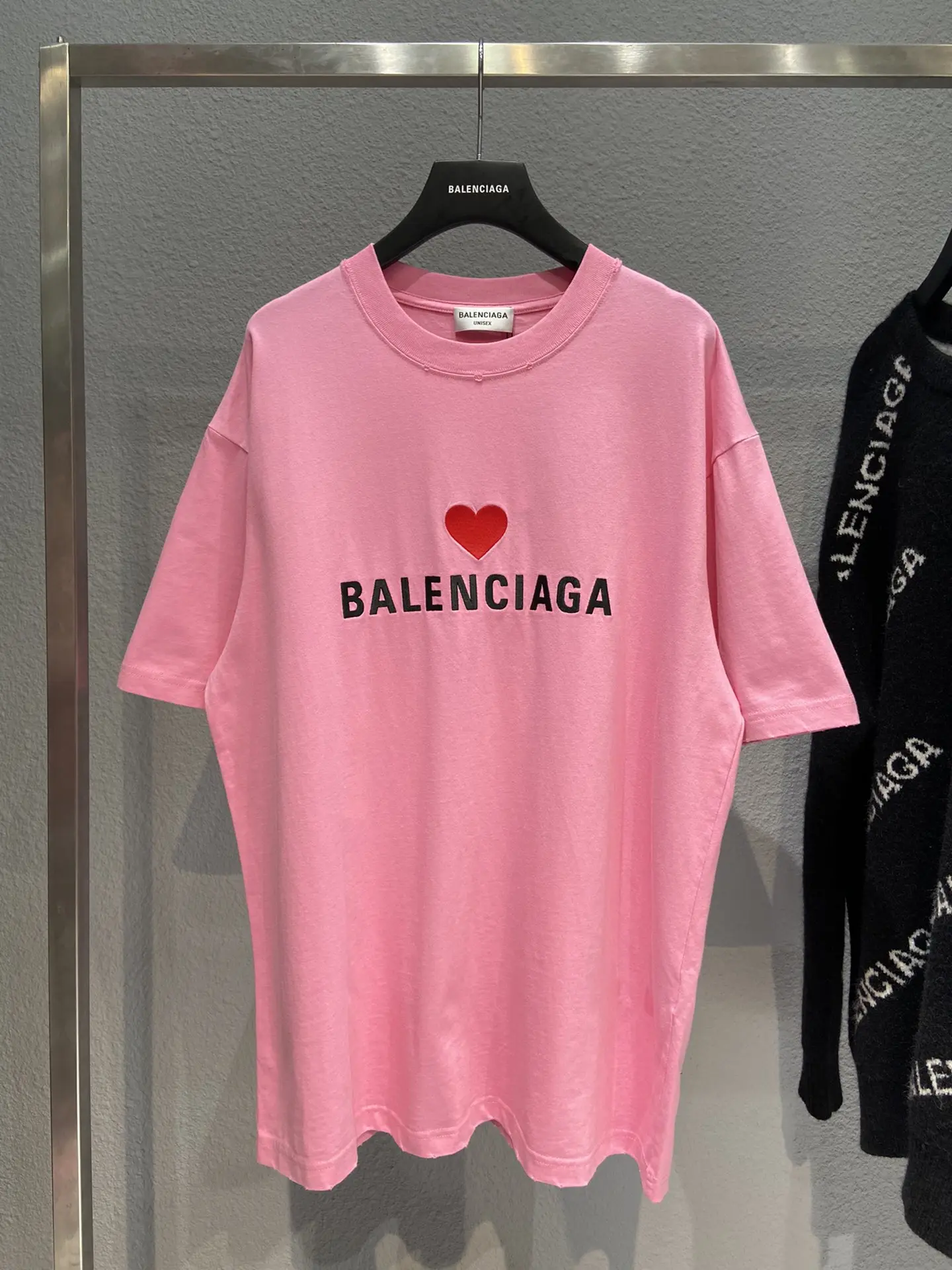 The Balenciaga Paris Heart Tee in pink is a unisex staple featuring a bold heart-shaped logo. Made from soft cotton, it offers comfort and style for everyday wear. A must-have for fashion lovers.